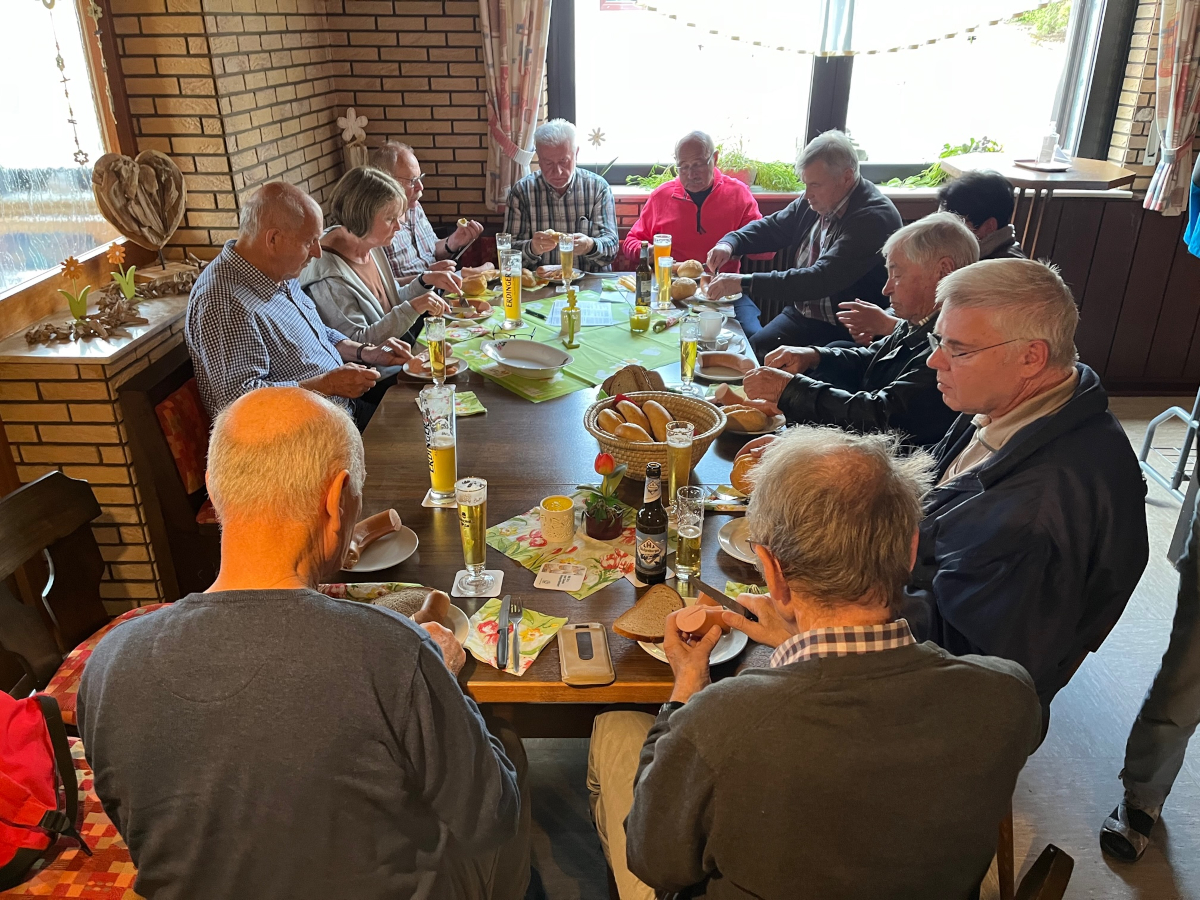 Von Westerburg starteten wir jetzt mit unseren Autos nach Stockum-Püschen, wo uns die Wirtin in der Gaststätte Christian mit einem kühlen Bier und heißer Fleischwurst aus der hauseigenen Metzgerei erwartete.
