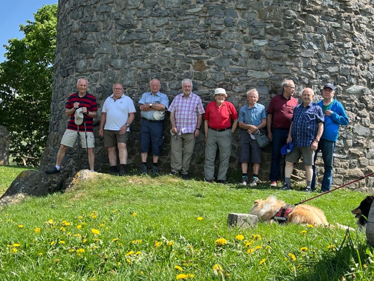 Die Fahrzeuge fanden im Ort am Dorfgemeinschaftshaus ihren Platz. Von dort bestiegen wir zu allererst mal den Burgberg.
